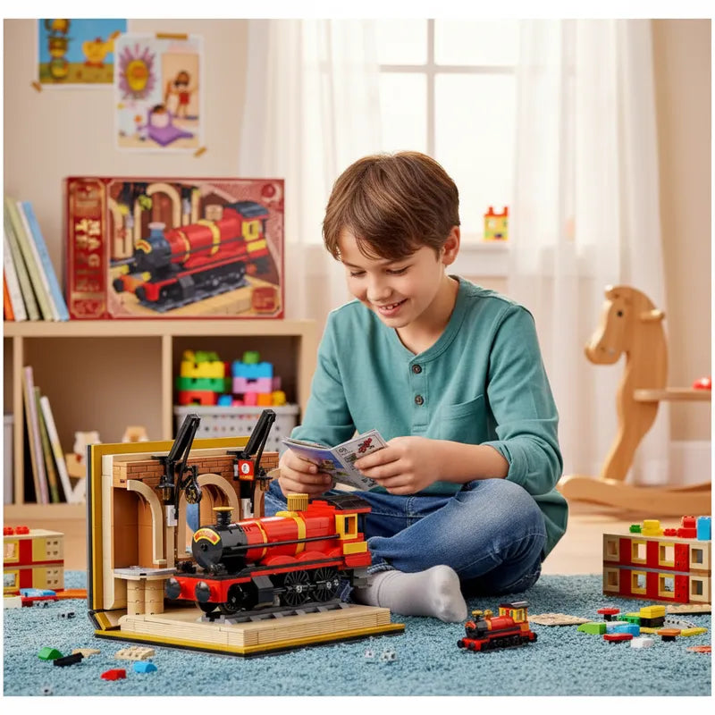 Este kit permite construir un tren rojo con vagones detallados, ruedas móviles y diseño realista que captura la esencia de estas locomotoras clásicas. Sus piezas cuidadosamente diseñadas aportan un aspecto dinámico y atractivo, perfecto para los amantes de los trenes y la aventura.