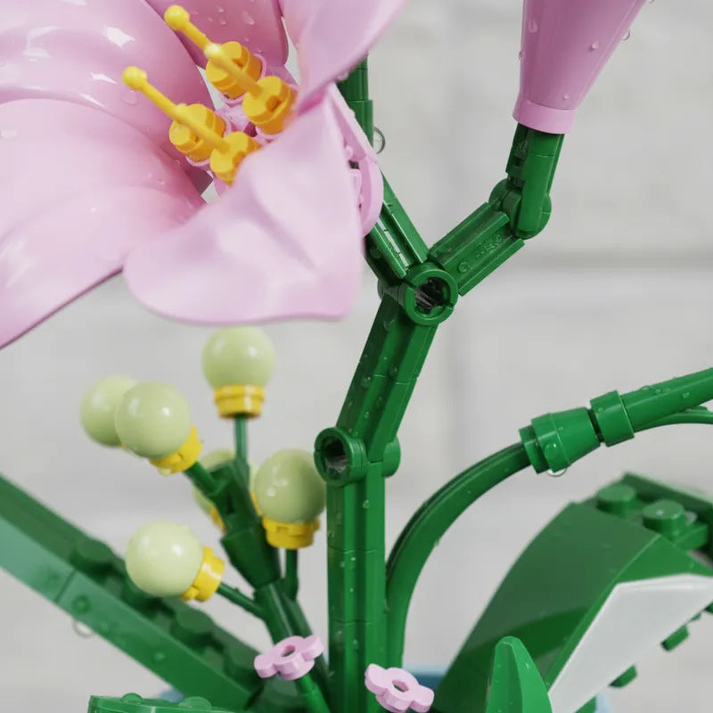 Este kit permite construir un lirio con pétalos fijos y tallo detallado, capturando la elegancia y delicadeza de esta flor. Sus piezas cuidadosamente diseñadas aportan un aspecto realista y atractivo, perfecto para los amantes de la naturaleza y la decoración.