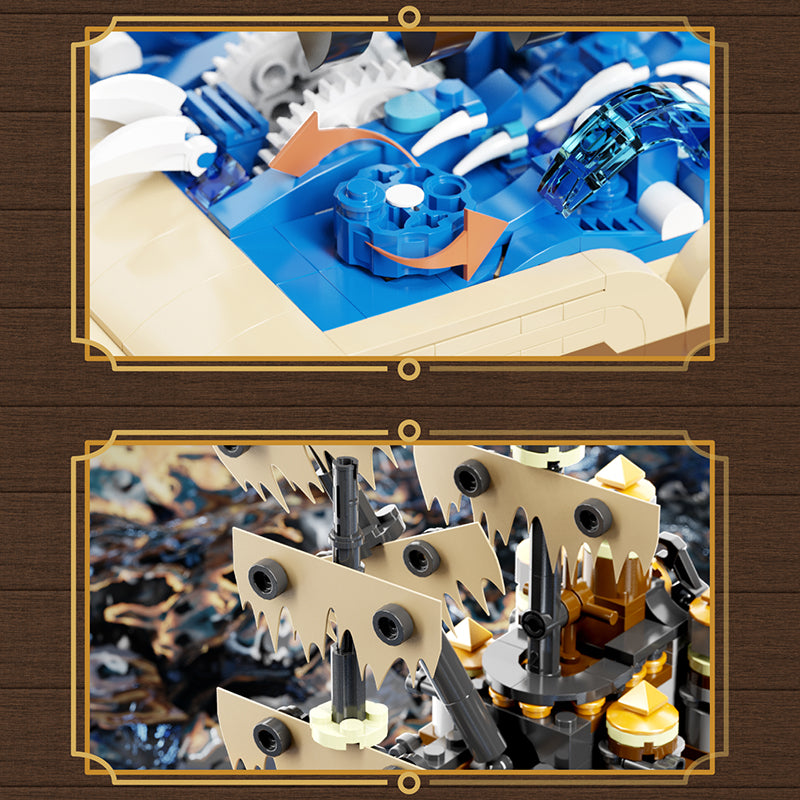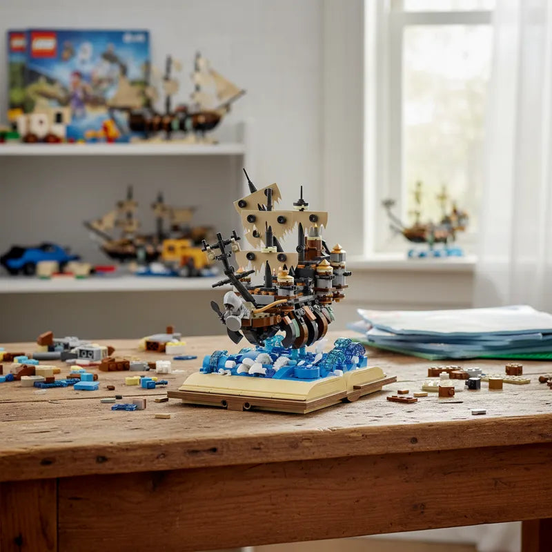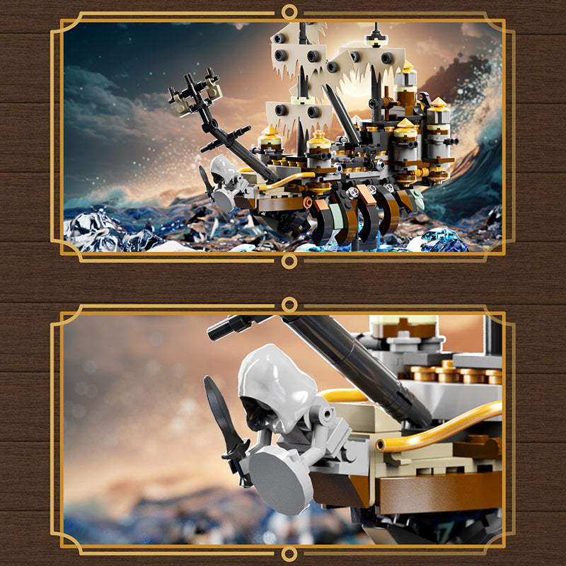 Este kit permite construir un barco fantasmal con velas desgastadas, detalles envejecidos, mástiles tenebrosos y accesorios que recrean la atmósfera de un navío embrujado. Su estética oscura y temática lo convierte en una pieza perfecta para fans de historias sobrenaturales y mundos imaginarios.